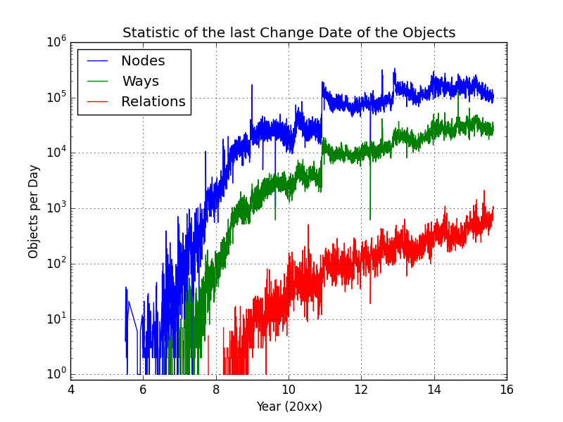 Auswertung des letzten Aenderungsdatums der OSM-Objekte