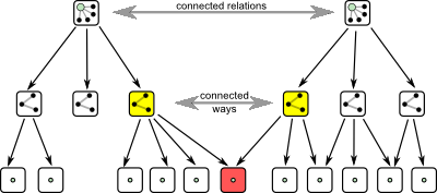 Two ways are connected by nodes. The flow direction can be determind by the position of the connection nodes in the way.